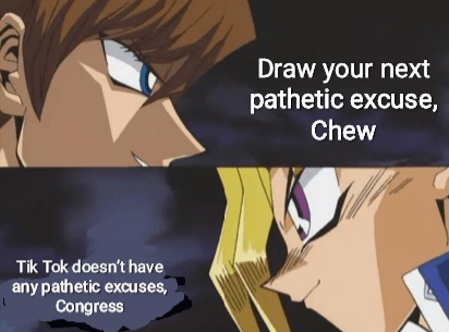 - Lack of faith is another structural issue this conversation had. Imagine trying to interview a guy with a bias of not believing or understanding what he wants to say. First, the Chair had begun the meeting with five minutes of not just explaining the issue but completely muddying the waters and ruining any chance of non-bias (which I feel like should be the role of the Chair but I’m just a civilian). Literally all she said was attacking Tik Tok via alleged connections to the Chinese government and using that as a basis for a spying on 150 million American theory. Then all the other members would (again spend half their time) assailing Tik Tok as if Chew personally and violently fucked their entire family line. Then they’d give a question and he’d try to answer it but kept getting interrupted. Even if he did give a full answer, they’d simply disagree and this ending is the worst part.