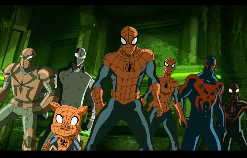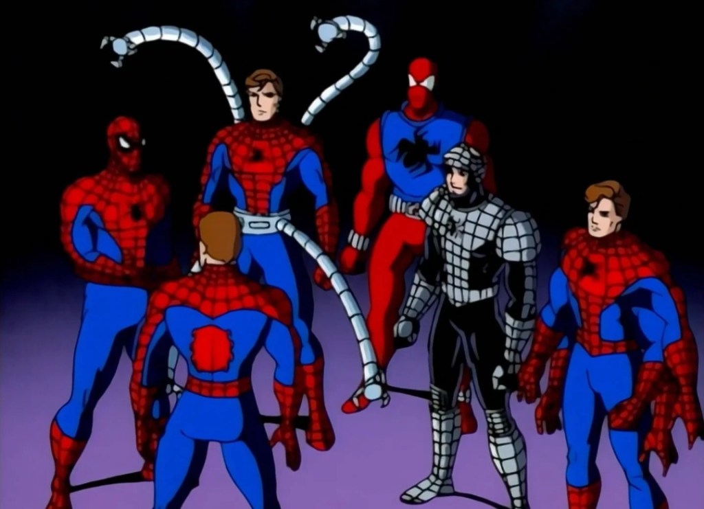 Spider War arc (1994-1996 cartoon): the series ends with a two-part episode in which a Spider-Man (beta we will call him here) is sort of recruited by the Beyonder and Madame Web to save a universe under assaults from a Carnage possessed Peter Parker. Coming to his aid are Spider-Carnage’s clone Ben Riley and 4 other variants inspired by some comic stories (such as the Man-Spider). There is another that depicts MCU haters’ idea of Holland’s ‘high tech’ Spider-Man. This was more of just a classic crossover where the only worlds built are the beta one (built from the whole show) and the Carnage one where everything’s gone awry. There is no Level Selector as the Beyonder and Madame Web are just apart of the writing team. The plan from Spider-Carnage is to use a bomb on an interdimensional portal to obliterate like every universe. This is such a funny prank considering that symbiotes like Carnage can communicate across universes, but it is derived from the fact that this Peter has lost both May and Ben and basically has no good reason to live. He is helped by Ben Riley’s Kingpin, Goblins, and Smythe. Eventually, Spider-Beta follows Spider-Carnage to the Parker-tech universe and has that variant of Uncle Ben talk him down into killing the symbiote and thus himself. At the end of the episode, the end of the series, Prime Peter meets Stan Lee (since one of the variants is an actor from a regular world) from the real fucking world. A Stan Lee that is writing Spider-Man comics, amazing. So this was kind of a clash of a crossover with the Clone storyline, an alt reality piece, but also a tagteam of interdimensional variants fighting together. This is actually then very unique amongst all media from my knowledge, to have the five of them team up with no fighting or anything. It does come out that Beta still leads the storyline mostly but I don’t think this was ever done before ever. I think they did it this way to celebrate, make fun of, and include the Ben Riley arc from the comics along with other stories they didn’t get to accomplish in the show’s scale. I call this one Beta because his show adapts most of what they can from the Amazing comics which is the special 616 universe. So maybe this one belongs in the beta branch of that verse but there is no official designation for him.